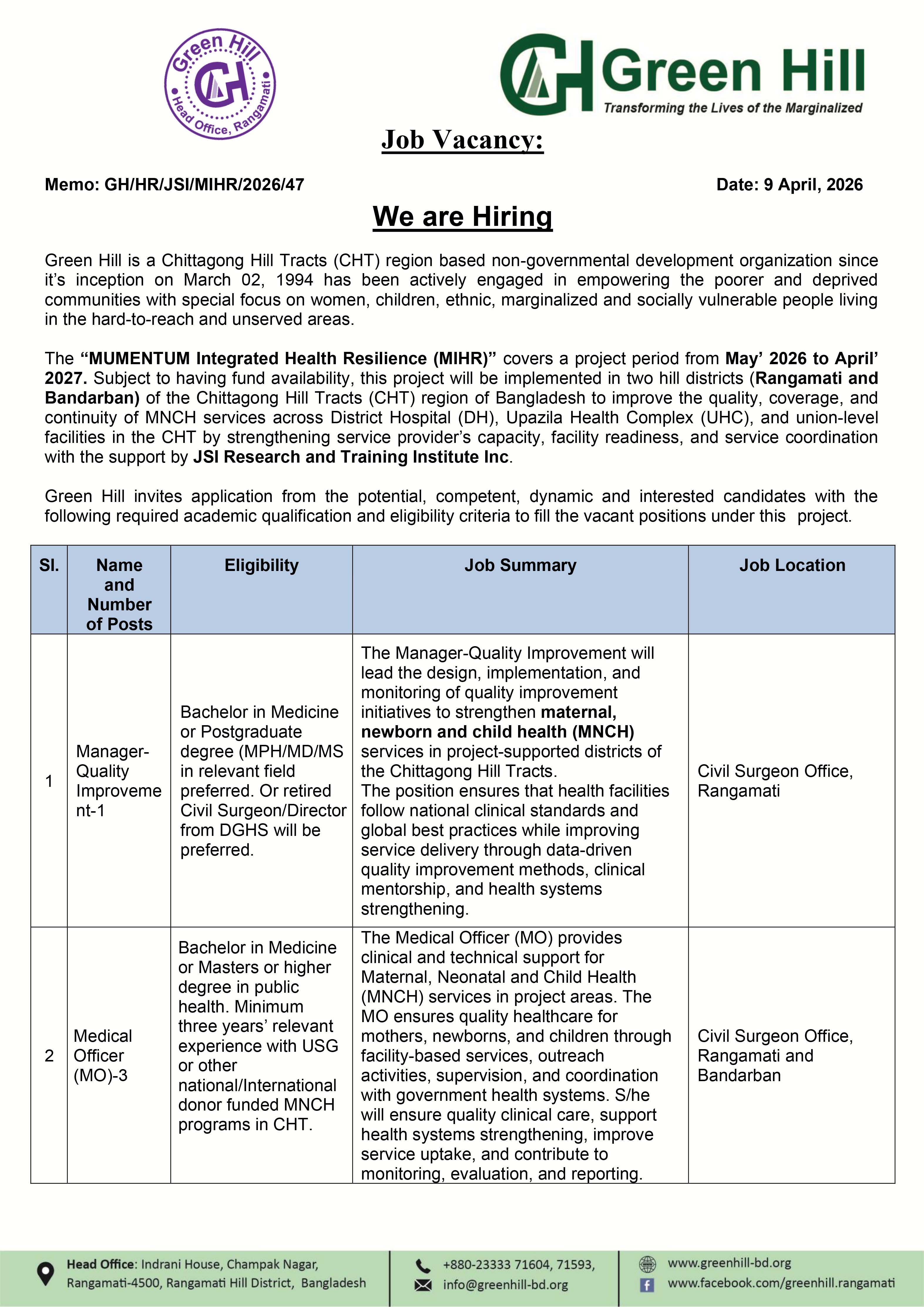 Strengthening Maternity and Child Health Services Delivery for the marginalized community in Rangamati