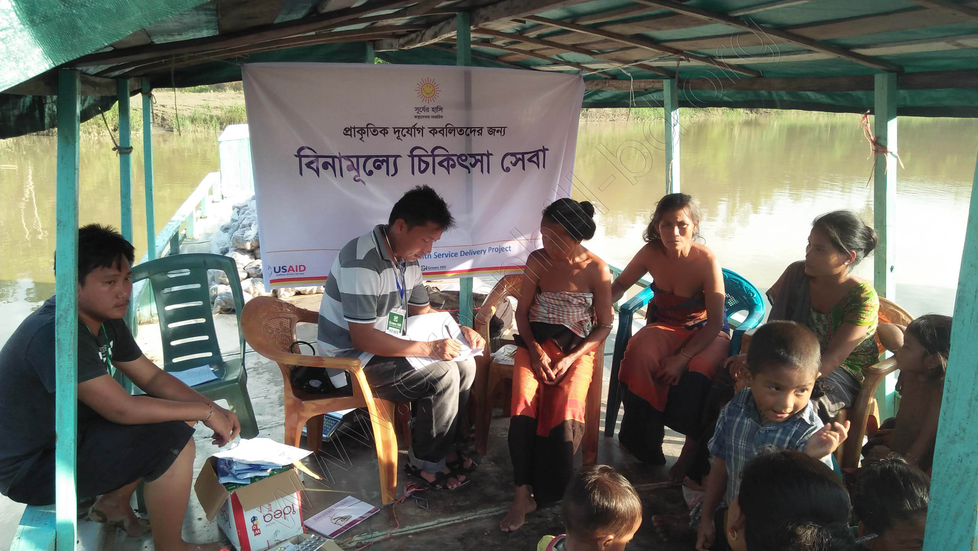 Historic devastating natural disaster in Rangamati due to heavy and long rainfall on June 12 & 13, 2017 remarkable number (115) of human dead and lot of physically injured that ever seen the people living in Chittagong Hill Tracts. Green Hill-NHSDP team has successfully organized 13 medical camps from 16 June 2017 to 02 July 2017 in different disaster affected areas in Rangamati town. Two medical team, member including doctors, paramedics, nurses, pharmacist and support & management staff separately or jointly served the disaster affected people with proper treatment and free medicine supplies. So far, a total number of 520 people including 42 children of 0-5 years and 358 women have been provided basic essential health care services with medicine and sanitary pad for adolescent and women.